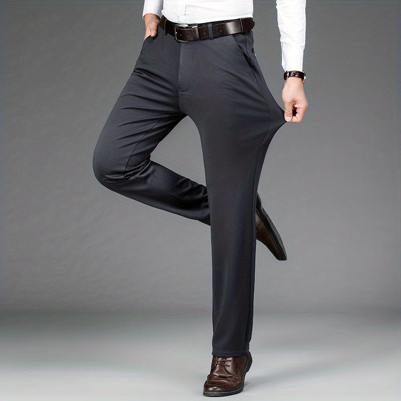 Classic Design Dress Pants, Men's Formal Solid Color Slightly Stretch Dress Pants For Spring Summer Business, Old Money Style
