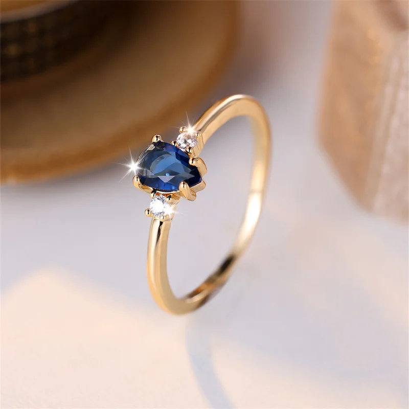 Minimalist Pear Cut Royal Blue Stone Water Drop Zircon Stacking Thin Rings For Women Gold Color Female Wedding Bands Jewelry CZ