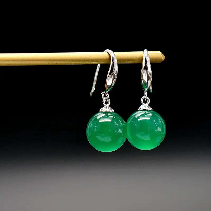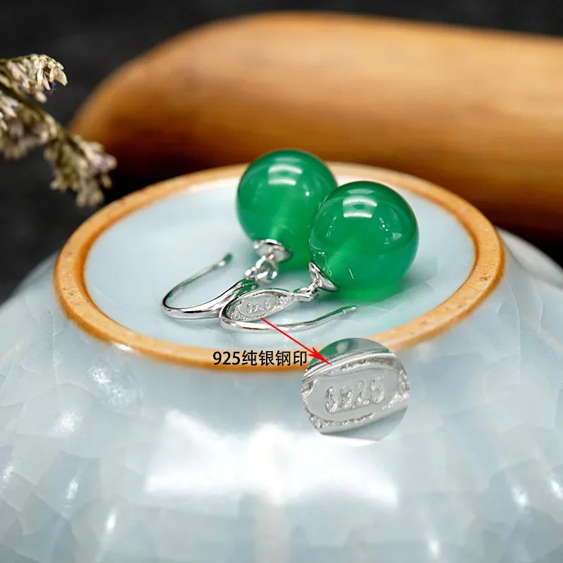 S925 Silver Color Green Emerald Jewelry Earring Natural Green Jade Silver 925 Jewelry Party Orecchini Drop Earring Women Grils