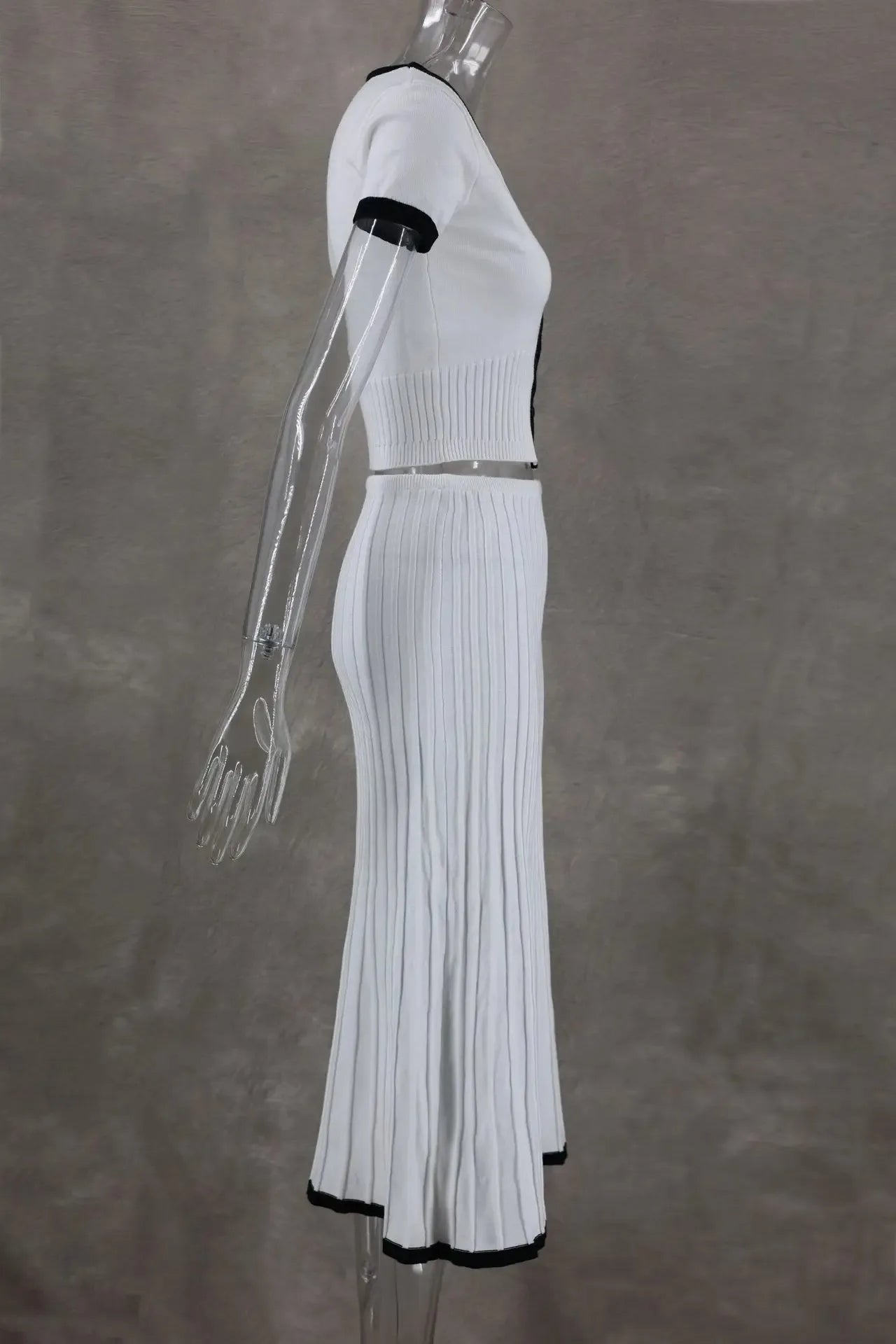 Summer Women White long Skirt Suit Short Sleeve V-neck crop top pleated set elegant dress 2 piece skirt set